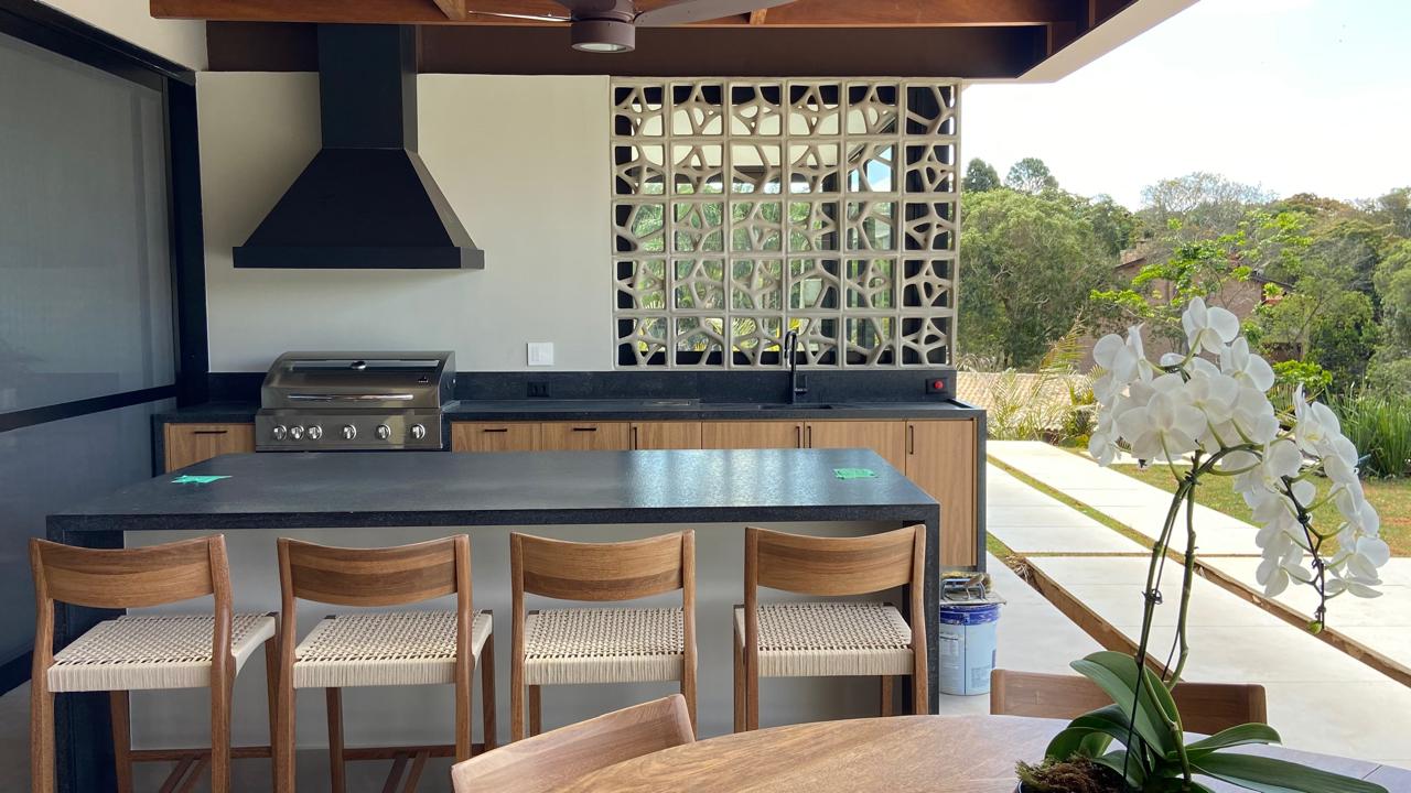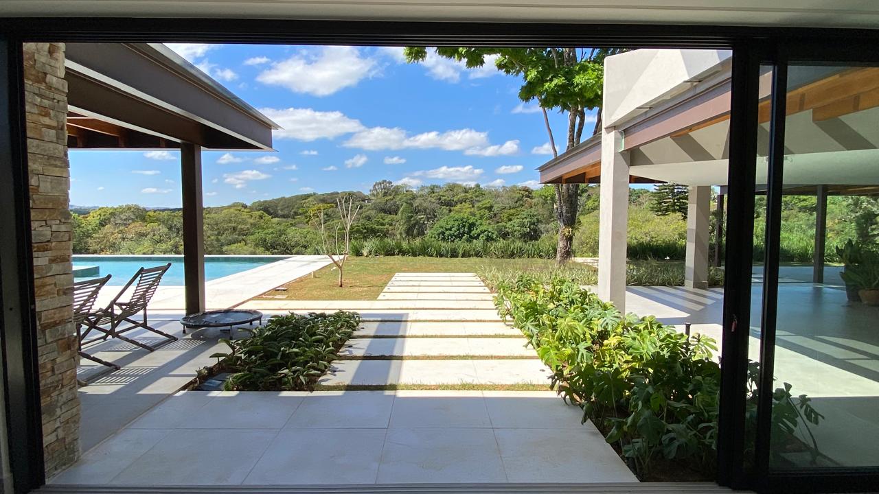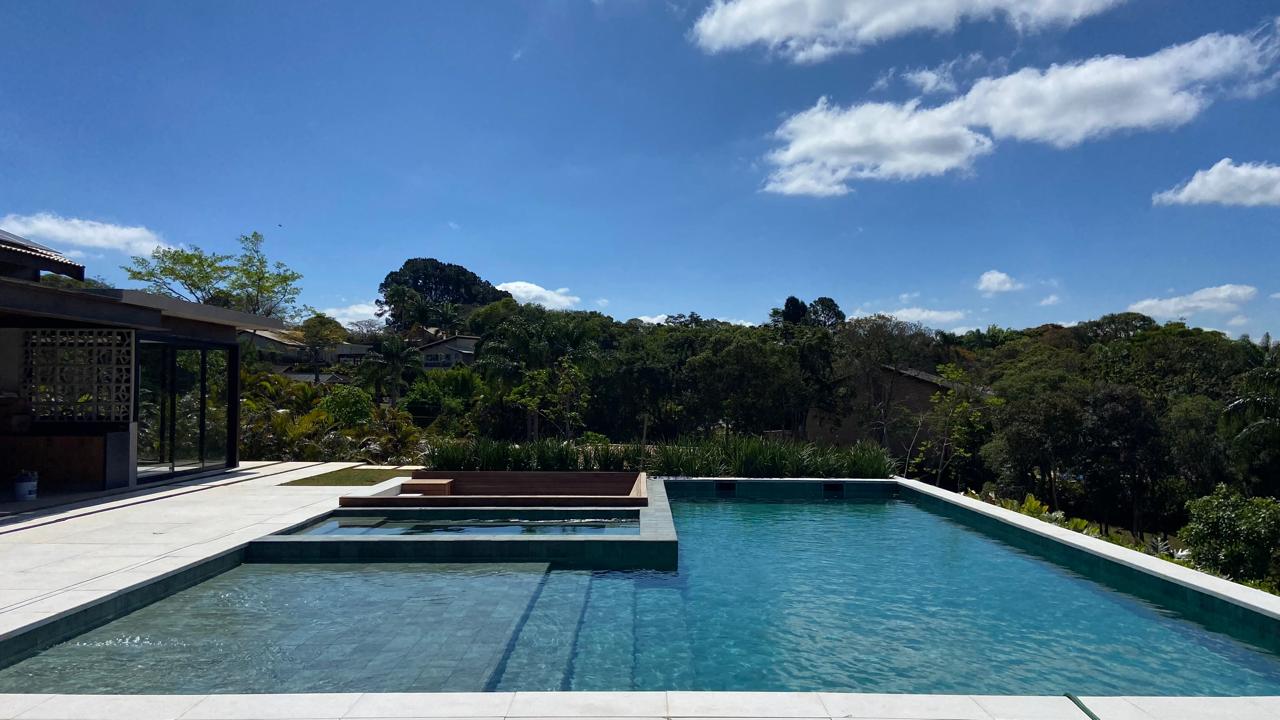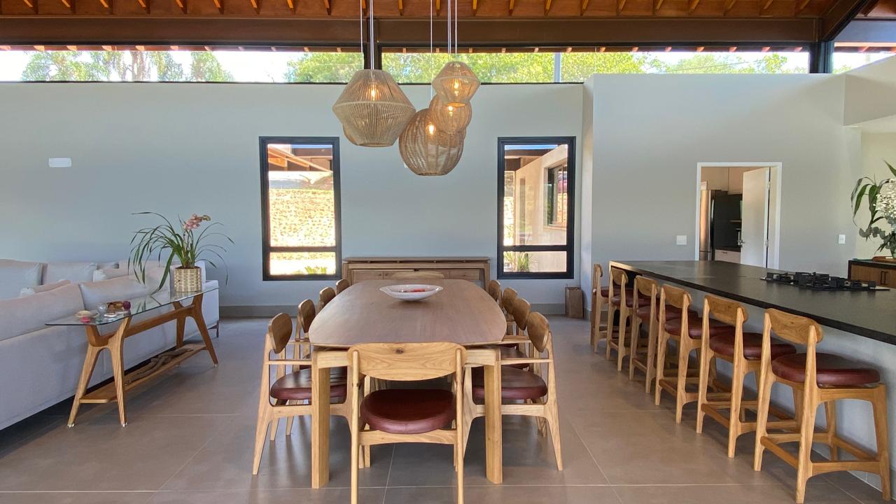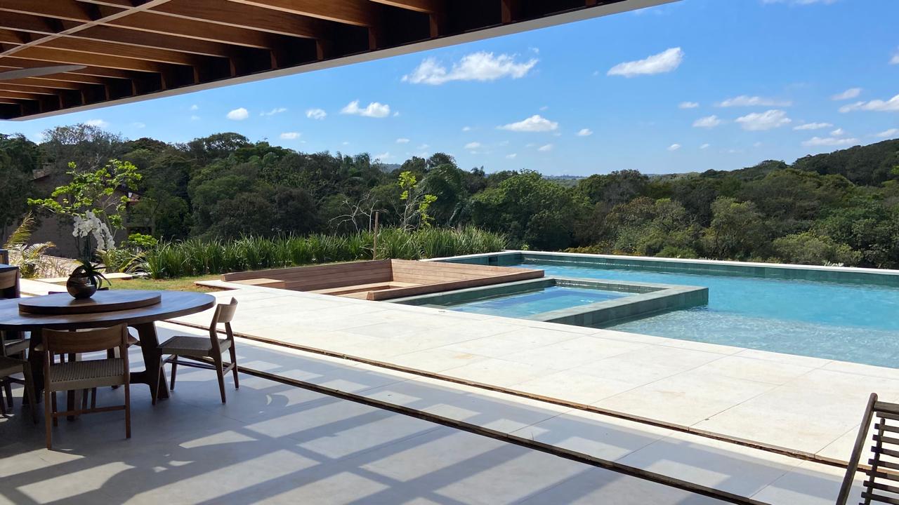 Neste projeto, implantado em dois lotes, partimos de uma residência já existente que foi reconfigurada para abrigar toda a ala íntima, composta por seis suítes e uma sala de TV.