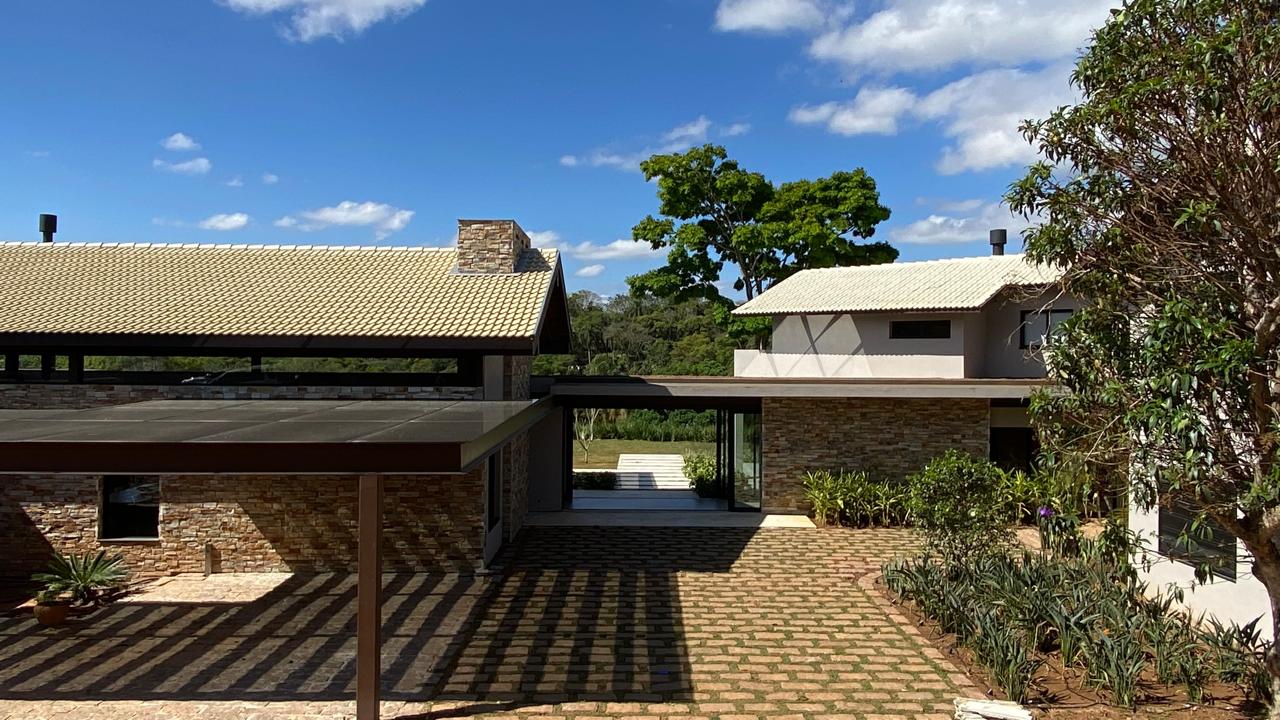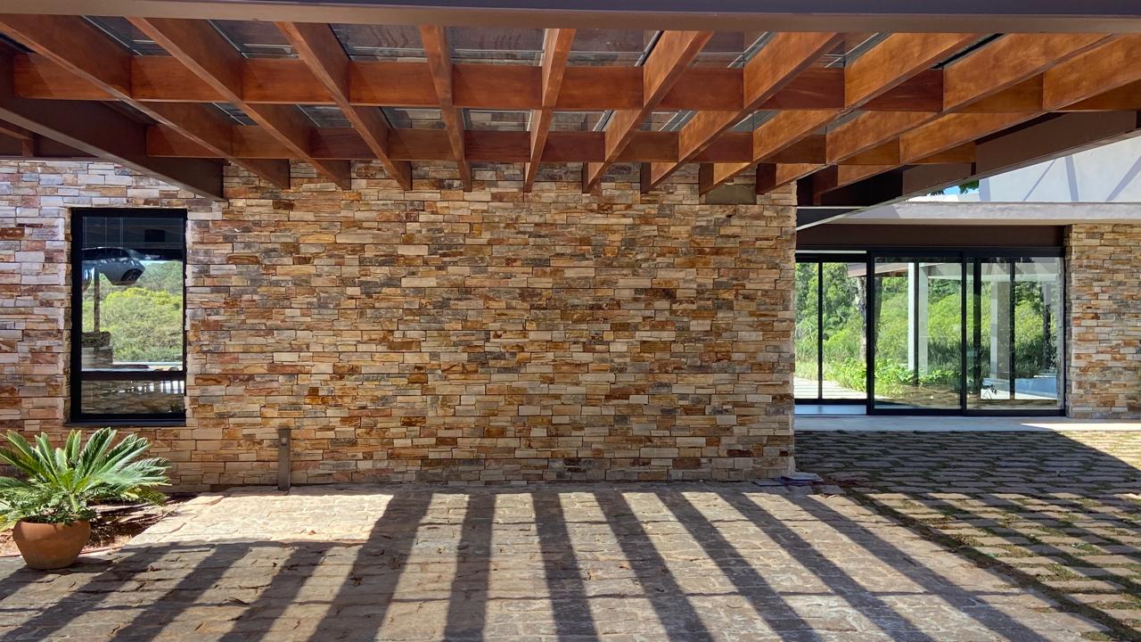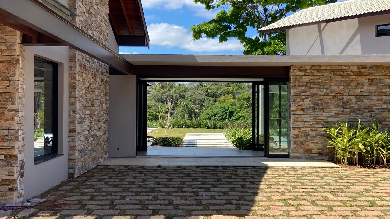 Neste projeto, implantado em dois lotes, partimos de uma residência já existente que foi reconfigurada para abrigar toda a ala íntima, composta por seis suítes e uma sala de TV. No terreno adjacente desenvolvemos um amplo espaço social e de lazer, conectado à área original por meio de uma elegante passarela. Essa passarela, elemento central do projeto, não apenas une as duas alas da casa, como também, ao ser aberta, transforma-se em um pórtico que emoldura e se abre para um exuberante maciço verde.