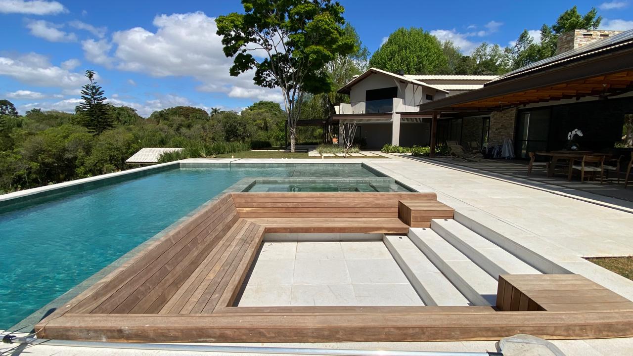 No terreno adjacente desenvolvemos um amplo espaço social e de lazer, conectado à área original por meio de uma elegante passarela.
